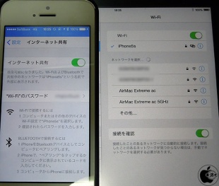 それをタップすると、iPhone側のインターネット共有が自動的にオンになり、パスワード無しでインターネット共有が出来ます。