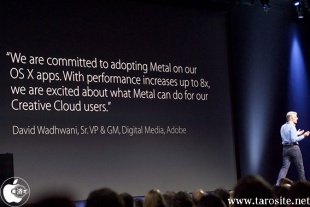 Adobeのデジタルメディア事業部門担当シニアバイスプレジデント兼ゼネラルマネージャーDavid Wadhwani氏は「OS Xアプリで、Metalを採用することにコミットメントし、Metalによって、Adobe Creative Cloudユーザーに、8倍ものパフォーマンス向上がなされることに興奮している」とコメントしています。