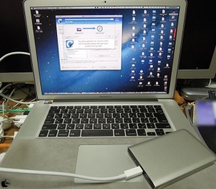今回のMacBook Pro (15-inch Late 2011)の内蔵ドライブは512GBSSDで、使用容量は450GB、Thunderbolt接続でどれぐらい時間が掛かるかを見ながら作業をしてみました。