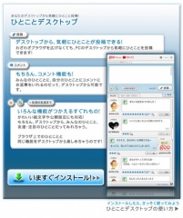 これにより、「ひとこと」機能をブログ上で楽しめるほか、デスクトップ上に常駐するウィジェットからも利用可能となり、より手軽に楽しく仲間同士でコミュニケーションを取ることができます。