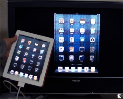 なお、このアクセサリーは、iPhone 4、iPod touch (4th generation)、iPadでも利用可能ですが、ミラーリング機能は利用出来ず、映画といった特定コンテンツのみ、最大720pビデオ出力が可能という制限が付きます。
