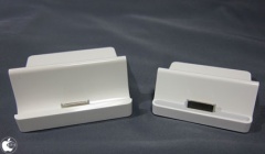 Apple iPad 2 DockとApple iPad Dockの裏側を比べてみると、Apple iPad 2 Dockが、どれだけ大きくなったかが見てとれます。