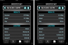 iPhone/iPadアプリ「Speedtest.net Mobile Speed Test」を使用して、カナダRogersのLTEとHSPA+のインターネット回線を使用して、速度テストを3回行った結果を動画レポート公開しています。