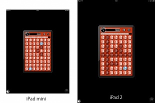 また、iPadのiPhoneアプリ互換動作表示の場合、液晶サイズが小さくなったため、内部的な解像度はiPad 2と同じ(ピクセル密度はiPhone 3GSと同じ163ppi)ながらも、実表示は小さく表示されます。