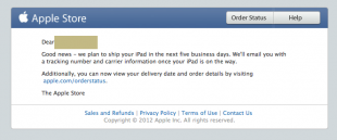 AppleInsiderが、Appleは、アメリカでiPad mini with Wi-Fi + Cellularを予約したユーザーに対して5日営業日で出荷するとの案内を出していると伝えています。