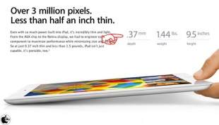Apple、iPad (4th generation)の薄さを「0.37mm」と表記????