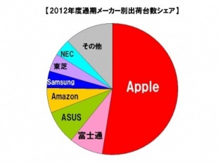 MM総研:2012年度通期国内タブレット端末出荷台数、メーカー別・OS別出荷台数共に3年連続でAppleが1位