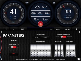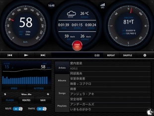 速度や方角、現在地の天気、簡易ナビ、iPodプレイヤーなどとして利用出来る車向けアプリです。