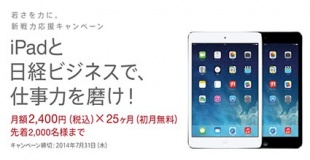 日経ビジネス、日経ビジネスDigital購読とiPad mini Retina同時購入で、月額2,400円 x25ヶ月(初月無料)で購入出来る「iPadと日経ビジネスで、仕事力を磨け!」キャンペーンを実施