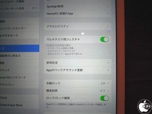 iPad Air 2は反射防止コーティングが施されているため、紫がかった色に見えるのが確認出来ます。