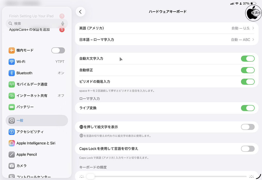 Magic Keyboardを接続した状態で、設定>一般>キーボード>ハードウェアキーボードを確認してみました。