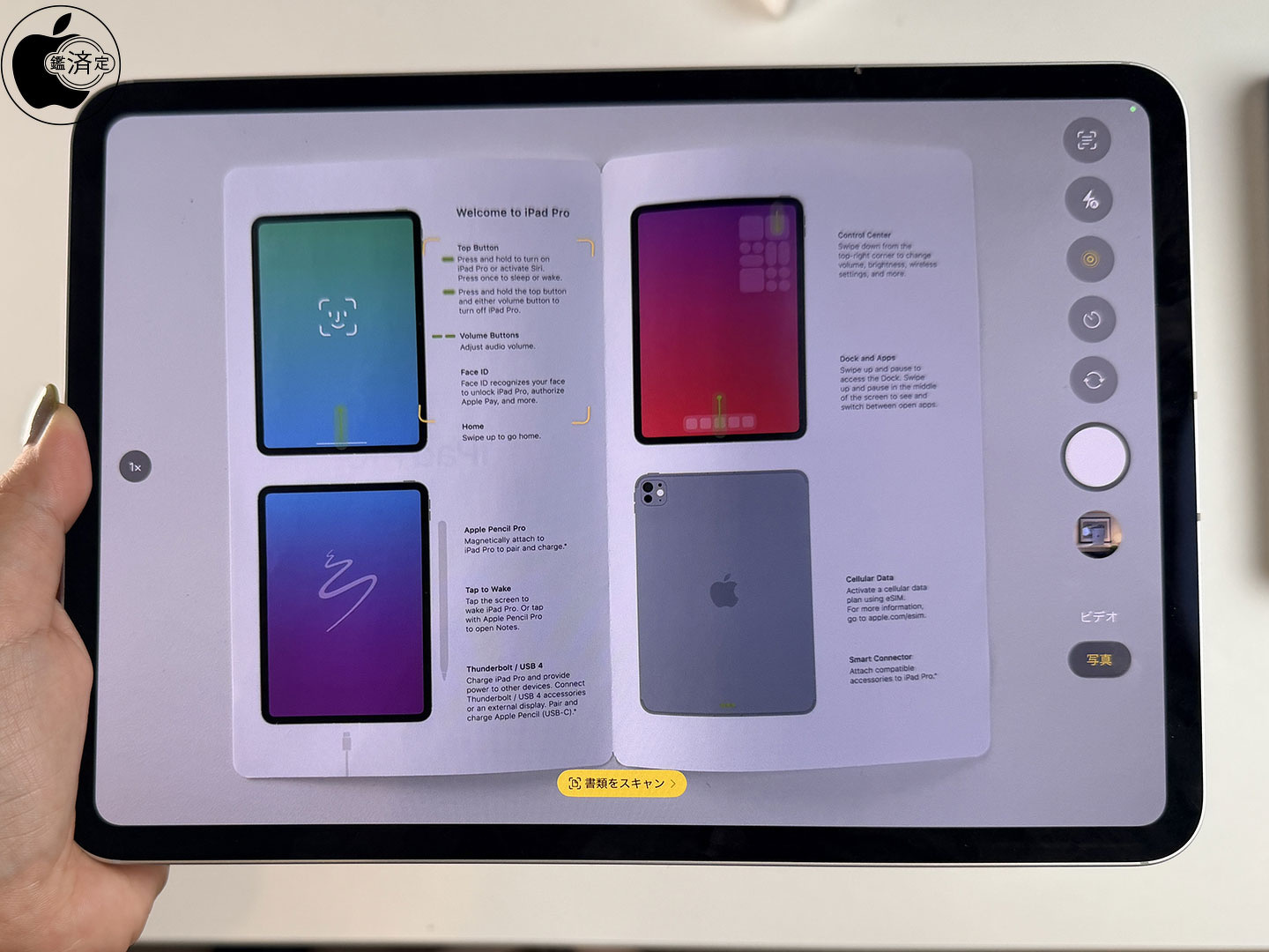 アダプティブTrue Toneフラッシュが搭載されたiPad Pro 11-inch (M5)の背面カメラは、カメラがAIを活用して、書類が申込用紙や領収書であることを検出します。