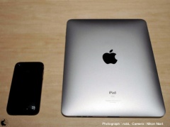iPhone 3GSとiPadを並べてみると、かなり大きいことが分かると思います。