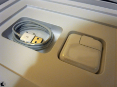 iPad with Wi-Fi本体を取り出すと、その下には、Apple DockコネクタUSBケーブル、10W USB電源アダプタが納められています。