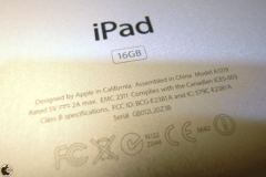 iPad with Wi-Fiの背面には、黒い文字でiPadと書かれてあり、その下に容量を示す記載があります。