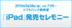 ソフトバンクモバイルが、5月28日午前7時50分から、ソフトバンク表参道 店頭にて「「iPad」 発売セレモニー」を開催すると案内しています。