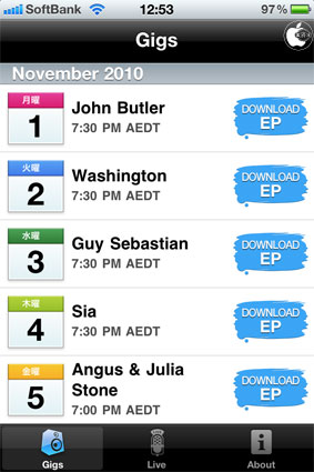 オーストラリアで開催される音楽の祭典「ARIA Awards 2010」に出演する5人のアーティストをピックアップした公式アプリです。