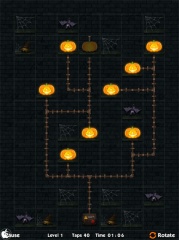 パイプのマスをタップすると90度ずつ回転するので、パイプを繋げて、全てのかぼちゃランプにガスを流し、灯りをつけることが出来たら1ステージクリアとなります。