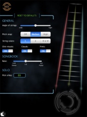 設定では、弦と弦との間隔、ピッチ、弦の色、ソングブックの再生速度、ソロ演奏時のキーなどを設定することが出来るようになっています。