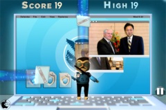 ゲームをスタートすると、情報を盗み出そうとする書類封筒が、エージェント目掛けて飛んで来るので、指でフリックして撃退し続けます。