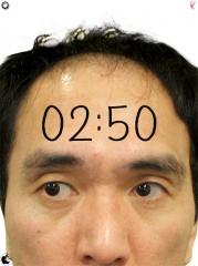 顔アップを選択すると、額に時刻が表示され、時々眼が動きます。