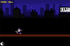 ゲームは、8ビットゲーム風のグラフィックが採用されていて、ただ、画面をタップして、スケートボードに乗ったキャラクターをジャンプさせながら、障害を乗り越えていき、距離を伸ばすという内容です。