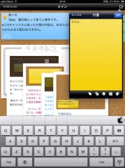 画面右上の編集アイコンをタップして、付箋を選ぶと、テキストメモを入力する事が出来ます。