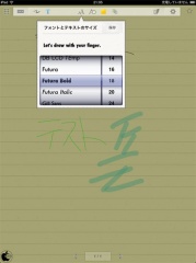 テキスト入力モードでは、フォントの種類やサイズを変更することが出来ます。
