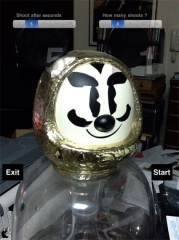Startボタンをタップすると、iPad 2のカメラが起動し、左側がセルフタイマー設定、右側が連射撮影数の設定ボタンになります。