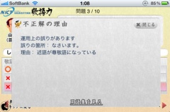 人間関係にふさわしい敬語を理解しているかを判断する敬語力テストアプリです。