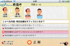 独立行政法人情報通信研究機構が、iPhone/iPod touch/iPad用敬語力テストアプリ「KeigoRyoku」を、App Storeにて無料配付を開始していたので試してみました。