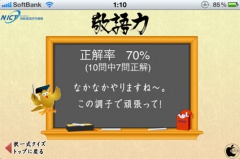 10問回答すると正解率が表示され、レベル判定結果が表示されます。