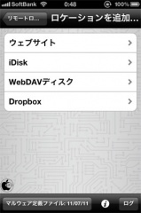 アプリ自体の機能として、ウェブサイト、iDisk内ファイル、WebDAVディスク、Dropboxファイルなどのリモートロケーションのウィルスチェックを行う事が出来ます。