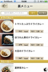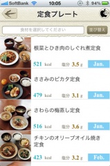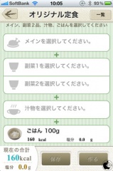 組み合わせは自由で、カロリーと塩分料がリアルタイムに計算されるので、絶えずカロリーを意識した献立を作成することが出来ます。