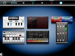 ピンチ操作で各電子楽器を拡大したり、それぞれをタップして拡大し、打ち込みしたり、ミキシングコントロールなどを行います。