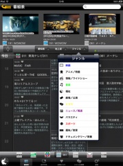 ジャンルをタップすると、表示されている番組情報の中から、ジャンル指定による絞り込み表示を行う事が出来ます。