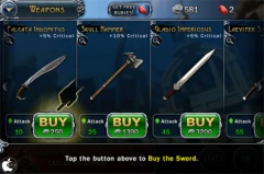ゲーム終了後に、獲得したコインで武器や防具を購入したり、クリスタルを使って体力回復アイテムを購入することが出来ます。