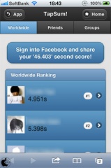 コロプラが、iPhone/iPod touch/iPad用脳トレーニングゲームアプリ「タップサム! [登録不要の無料脳トレーニングゲーム]」を、App Storeにて無料配付を開始していたので試してみました。