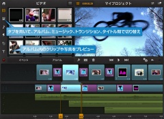 ストーリーボードでクリップをすばやく整理、タイムラインを使って高精度編集、そして高品質のトランジション、エフェクト、サウンドトラックを追加できます。