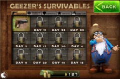 最初に表示される画面は昼まで、左上のGEEZER'Sがアイテムショップ、右側のBEGIN THE NIGHTが、ゾンビと戦うプレイモードです。