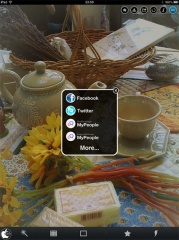 アクションボタンをタップすると、Facebook、Twitter、MyPeopleなどに投稿することも出来るようになっています。