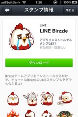 このアプリをインストールすると「LINE」のスタンプショップからBirzzleスタンプを入手することが出来ます。