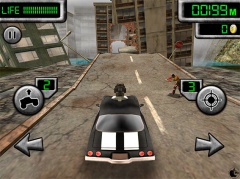車を操作して、車やゾンビ、襲ってくる恐竜などを避けながら走り続けます。