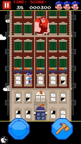 ヒーローになれない“悪役”のラルフが破壊するビルの窓を修復するゲームアプリです。