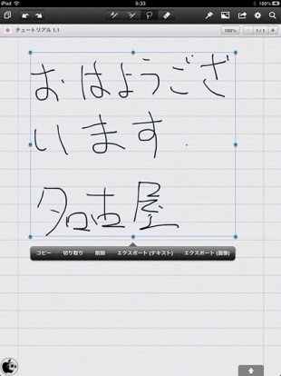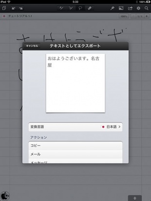 使用方法は簡単で、新規ノート上に 漢字かな交じり文を手書きします。