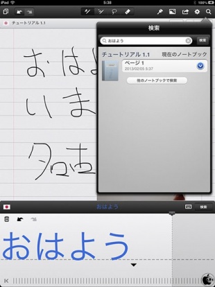 このアプリはノート上に書かれた手書き文章を文字認識しているため、手書きノートを文字検索することが出来ます。