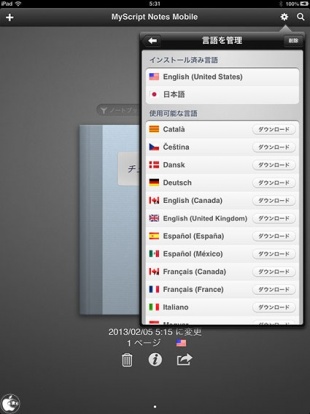 初回起動時に日本語の手書き認識リソースのダウンロードが必要です。