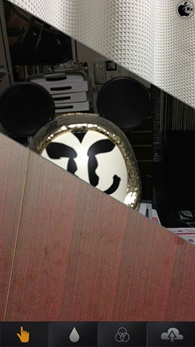 残りのフレームには、iSightカメラからの映像が表示されていて、本体を傾けたりと構図を変えながら写真を撮影します。