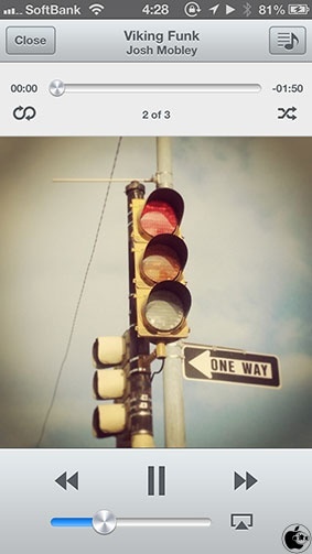 ミュージックは、シンプルなプレイヤーが表示されます。