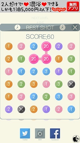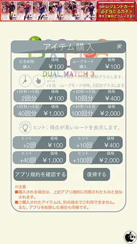 アプリ内課金で、広告非表示や、得点が高いルートを表示してくれるヒントなどが購入出来ます。